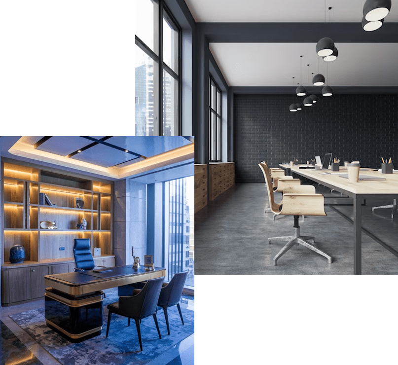 Our custom office design service is dedicated to creating workspaces that reflect your brand identity and company culture. We work closely with you to understand your business needs and vision, developing layouts that optimize space, boost productivity, and inspire creativity. From initial concept to final design, we ensure every detail aligns with your goals for a truly personalized workspace.